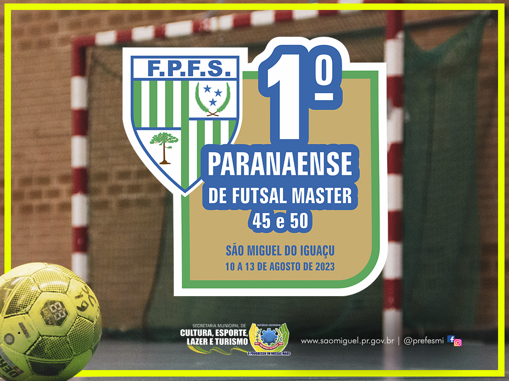 O município de São Miguel do Iguaçu vai sediar o 1º Campeonato Paranaense Master de Futsal, que será realizado entre os dias 10 e 13 de agosto. Será a primeira vez na história que a Federação Paranaense de Futebol de Salão (FPFS) vai realizar a competição voltada às categorias 45+ e 50+. A confirmação do campeonato aconteceu após reunião entre representantes da Federação Paranaense e do Governo Municipal, que será parceiro do evento, prestando todo o suporte necessário para a sua realização. ‘O Ginásio Joelson Marcelino está recebendo muitas melhorias e está preparado para receber essa grande competição. Ficamos muito felizes em sermos escolhidos para sediar esse primeiro campeonato’, comemorou o secretário de Cultura, Esporte, Lazer e Turismo, Adaltro de Góes. O presidente da Federação de Futsal, Anderson de Andrade, destacou que grandes nomes do esporte estarão reunidos para a disputa da competição. ‘É uma oportunidade para o público paranaense, apaixonado por futsal, reencontrar ídolos que fizeram história em nossa modalidade no estado. Além disso, também podemos oportunizar encontro de amigos e a prática dessa modalidade tão contagiante que é o futsal’, comentou. De acordo com a FPFS, o Campeonato Paranaense Master de Futsal contará com a participação de oito equipes em cada categoria. As inscrições estão abertas e podem ser feitas por meio do e-mail aldinocardias@gmail.com. Mais informações: (45) 9.91064647. ASSESSORIA DE COMUNICAÇÃO, IMPRENSA E MIDIA SOCIAL