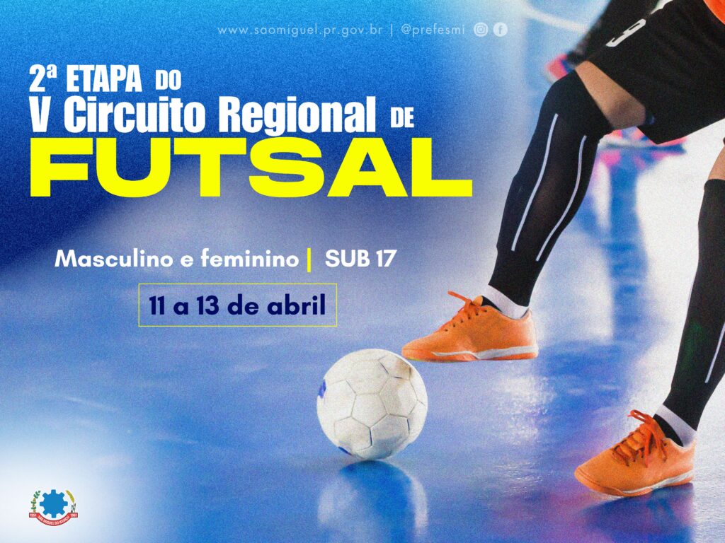 O município de São Miguel do Iguaçu recebe neste fim de semana, de 11 a 13 de abril, a 2ª etapa do V Circuito Regional de Futsal Masculino e Feminino sub-17, evento organizado pela Secretaria de Esportes de Itaipulândia, com o apoio de 08 municípios da região. Cerca de 200 atletas vão estar na cidade disputando a competição nos Ginásios Joelson Marcelino, Valter Marcon e da Escola Municipal Henrique Ghellere. São Miguel do Iguaçu está no masculino no grupo B com Itaipulândia, Santa Helena e Vera Cruz do Oeste. No feminino está no grupo A com Cascavel, Foz do Iguaçu e Medianeira. O masculino está em 2º lugar na competição e o feminino em 7º. Também participam da competição os municípios de Medianeira e Matelândia. Os jogos iniciaram nesta sexta-feira (11) às 14h00 e o encerramento, com entrega da premiação, será no domingo (13) pela manhã no Ginásio de Esportes Joelson Marcelino. São Miguel estreia no masculino às 15h00 desta sexta-feira contra Vera Cruz do Oeste. O feminino às 20h30 contra Cascavel. ASSESSORIA DE COMUNICAÇÃO E MIDIA SOCIAL