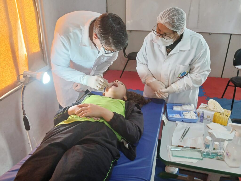 Em alusão ao ‘Dia Mundial da Saúde Bucal’, celebrado no dia 20 de março, o Governo Municipal de São Miguel do Iguaçu, por meio da Secretaria de Saúde, promoveu uma série de atendimentos voltados aos estudantes da rede municipal de ensino, reforçando o compromisso com a prevenção e o cuidado desde a infância. A ação, denominada “Dia B”, contou com a aplicação do Tratamento Restaurador Atraumático (ART), uma técnica odontológica minimamente invasiva que remove a cárie utilizando apenas instrumentos manuais, com posterior selamento do dente por meio de ionômero de vidro, garantindo mais conforto e segurança aos alunos atendidos. Além dos procedimentos clínicos, os estudantes participaram de escovação supervisionada, aplicação de flúor, avaliação odontológica, distribuição de kits de higiene bucal e atividades lúdicas, promovendo educação em saúde e incentivando a formação de hábitos saudáveis duradouros. Para o cirurgião-dentista Edvilson Stadudt, a iniciativa amplia o acesso aos serviços e facilita a rotina das famílias. “Uma ação fundamental na prevenção à saúde bucal”, completou. A técnica em saúde bucal Nadir de Lara dos Santos destacou a importância do trabalho contínuo nas escolas. “Nossa ideia é, ao final, festejar os avanços da saúde bucal dentro das escolas”, destacou. A cirurgiã dentista Merien Kestring, relatou que, nos 22 anos que atua na saúde bucal, foi a primeira vez que viu uma ação dessa natureza. “Foi cansativo, mas valeu muito a pena”, disse. A diretora do Departamento de Saúde Bucal, Clair de Lara Boles, avaliou a ação de forma positiva, destacando que o tratamento precoce reduz o sofrimento no futuro. “Isso é um avanço muito grande na saúde bucal de São Miguel do Iguaçu”, observou. ASSESSORIA DE IMPRENSA