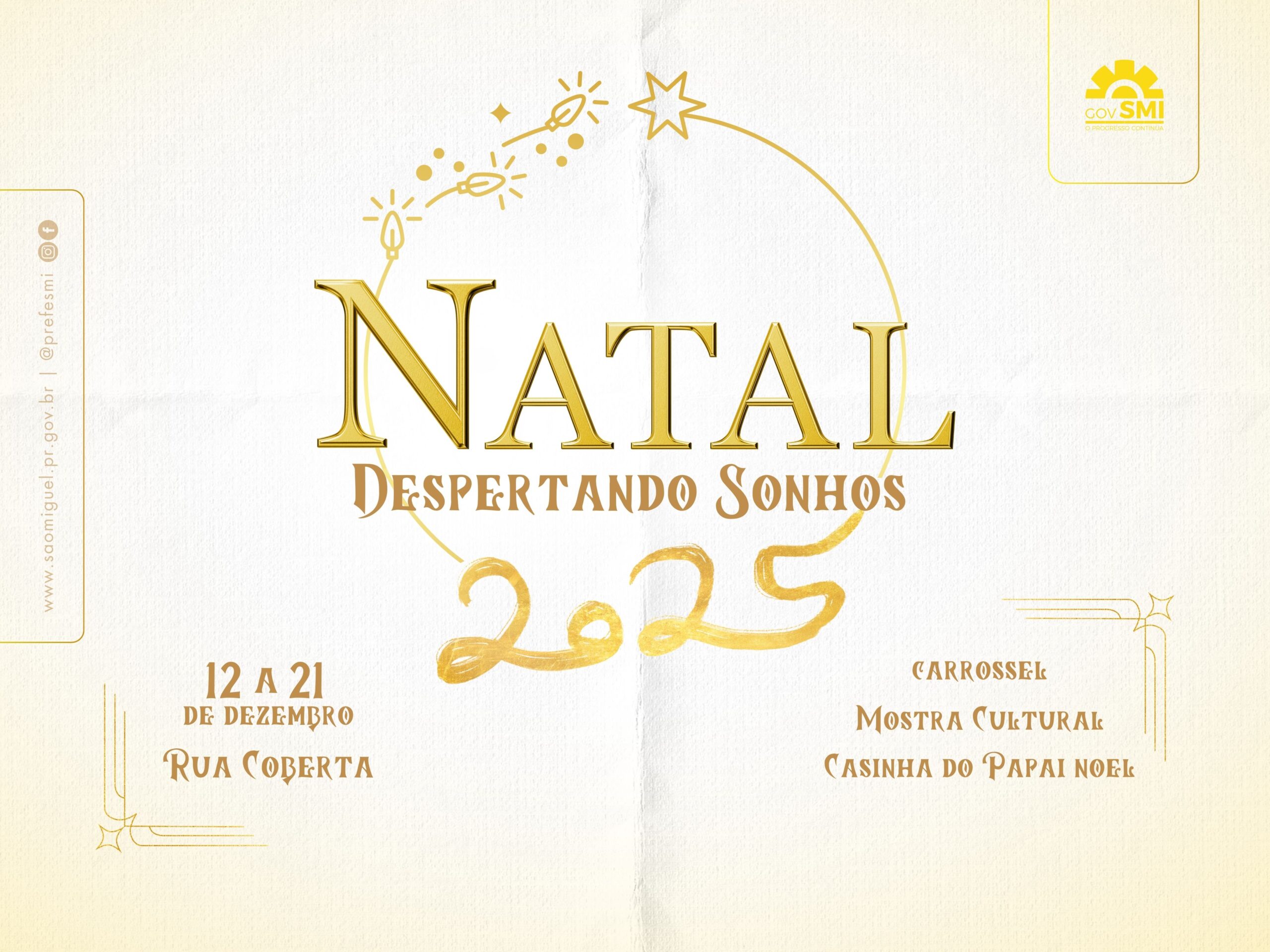 O Governo Municipal de São Miguel do Iguaçu realizará nesta sexta-feira, dia 12 de dezembro, às 19h30, na Rua Coberta Addy Cavalca, a abertura oficial do Natal Despertando Sonhos 2025, uma celebração preparada para encantar famílias e fortalecer o espírito natalino no município. A noite contará com apresentação cultural, entrega de chocolates, carrossel gratuito para as crianças e a tradicional chegada do Papai Noel.