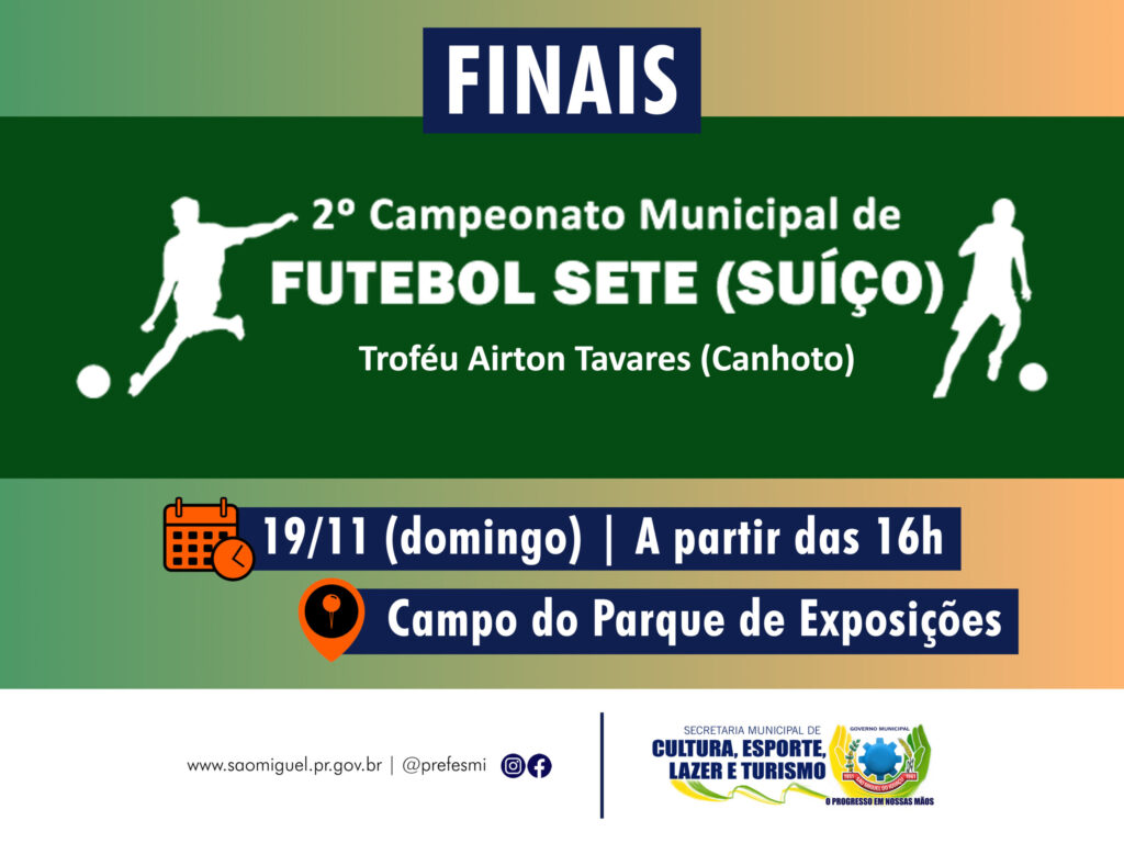 Serão disputadas neste final de semana as partidas finais do 2º Campeonato Municipal de Futebol Sete (Suiço) – Troféu Airton Tavares (Canhoto), que está sendo organizado pelo Governo Municipal de São Miguel do Iguaçu, por intermédio da Secretaria de Cultura, Esporte, Lazer e Turismo. Os jogos serão realizados no domingo, 19, no Campo 01 do Parque de Exposições Benevenuto Verona, marcando o encerramento desta grande competição que contou com a participação de mais de 400 atletas, divididos em 31 equipes. O 2º Torneio Municipal de Futevôlei de Areia, que estava marcado para este sábado, 18, foi transferido para o final de janeiro de 2024. O motivo do adiamento é que o local onde está a arena de disputa, no Parque de Exposições, está com grande concentração de maquinários que estão trabalhando para a realização da Expo São Miguel 2023, evento que acontece de 24 a 27 de novembro. Também no final de semana as equipes de São Miguel do Iguaçu estarão disputando o Regionalito de Futsal Master de Itaipulândia, Jogos Paradesportivos, Campeonato Paranaense de Voleibol Masculino e Copa Oeste de Handebol masculino e feminino. Nesta sexta-feira, 17, a equipe de futsal master 40+ disputa o título do Regionalito de Itaipulândia. A decisão será às 20h30, contra a equipe de Medianeira. São Miguel chega invicto à final, onde venceu as três partidas que disputou. Também nessa sexta, o time do vôlei masculino disputa o Campeonato Paranaense sub-15, série A, na cidade de Cascavel. Na estreia o time perdeu para o Círculo Militar do Paraná. O segundo confronto está marcado para as 14h00, contra Curitiba. O evento segue até domingo, 19. Ainda na cidade de Cascavel, os times de handebol masculino e feminino sub-17 disputam a fase final da Copa Oeste. No masculino, a equipe joga neste sábado, 18, às 09h00, contra Corbélia e às 10h00, o feminino enfrenta Maripá. E a delegação de São Miguel do Iguaçu está indo participar do 11° Jogos Paradesportivos do Paraná, na cidade de Foz do Iguaçu dos dias 19 a 22 de novembro de 2023. A delegação e composta por 30 pessoas, entre técnico, staff, motorista e atletas com deficiência Intelectual e deficiência Física. Participando nas seguintes modalidades: Atletismo, Golf-7, Handebol Deficiente Intelectual, Handebol Cadeira de Rodas No domingo, 19, serão realizadas as finais do Campeonato Municipal de Futebol Sete, independentemente das condições climáticas, com os seguintes confrontos: 16h00 – Livre Feminino Transmorgan x Oficina do Óculos/Grazy Flores 17h00 – 48+ Masculino Solar SMI /Recanto de Festas/ Transmorgan x Panificadora e Confeitaria Kipão 18h00 – 38+ Masculino Transmorgan/Solar SMI/Recanto de Festas x Imperio do Chopp/Amigos do Futebol 19h00 – Livre Masculino Resenha do DM x Kipão/ CHDS do Brasil/Transmorgan Logo após o último jogo será realizada a cerimônia de entrega dos troféus e medalhas. Já foram conhecidos e premiados os terceiros lugares da competição. A categoria 38+ teve como 3º lugar a equipe Grazy Flores/Casa de Carne/Compace. A categoria 48+ teve em 3º lugar a equipe Santa Rita Futebol Clube. Na categoria Livre Masculino, o 3º lugar ficou com a equipe União Comercial/Império do Chopp. ASSESSORIA DE COMUNICAÇÃO, IMPRENSA E MIDIA SOCIAL