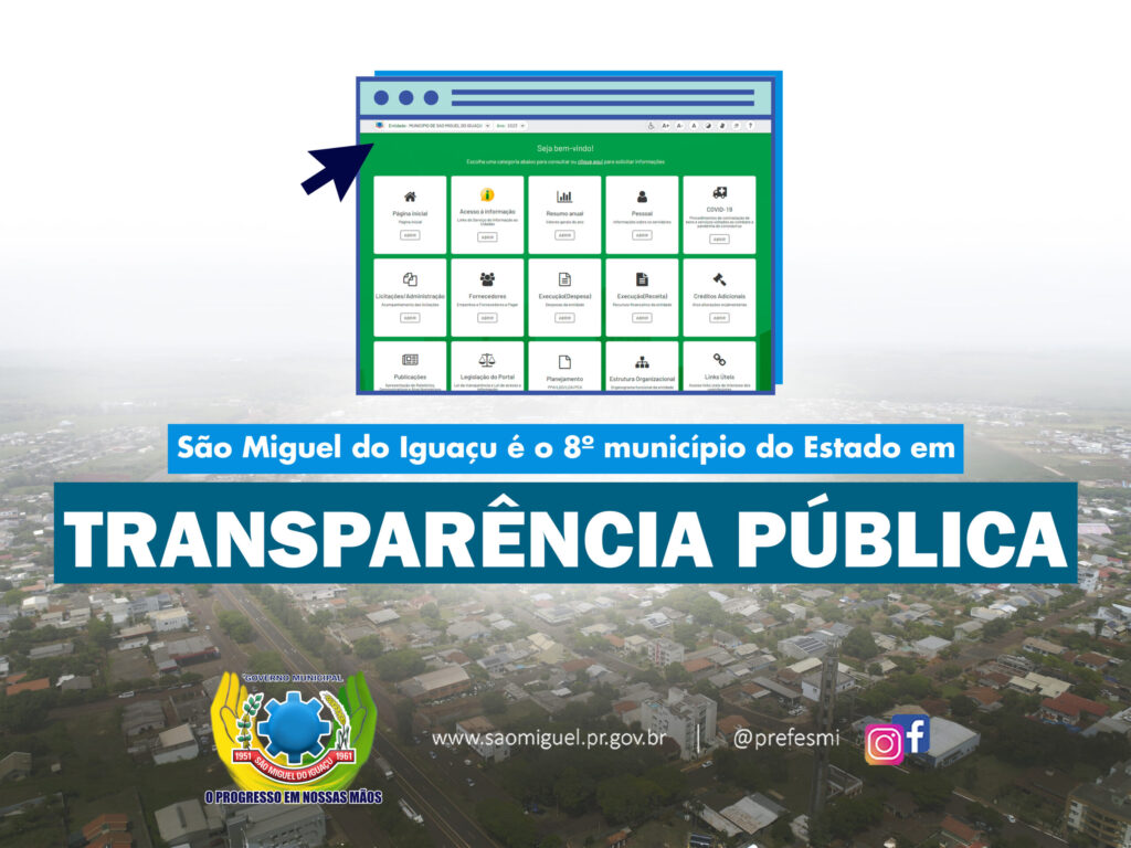 São Miguel do Iguaçu está entre os municípios com maior índice de Transparência Pública do Estado, segundo ranking divulgado pelo Tribunal de Contas do Paraná (TCE-PR) na segunda-feira, 13. De acordo com o Índice de Transparência da Administração Pública, ou ITP-TCE/PR, que é uma avaliação baseada em uma série de questionamentos e uma análise minuciosa nos próprios sites oficiais e portais de transparência dos municípios, São Miguel do Iguaçu é o oitavo município paranaense em transparência, com índice de 97,40%. Nesta avaliação, o Tribunal de Contas do Paraná mede, em parceria com a sociedade, o grau de transparência dos portais eletrônicos dos entes públicos. Além disso, também avalia pontos considerando a perspectiva do usuário comum, e não apenas do usuário conhecedor da máquina pública. O prefeito Boaventura Motta enfatizou o respeito da administração com o bem público municipal e destacou o empenho dos servidores. ‘O nosso compromisso é com a transparência e o respeito aos nossos munícipes e ao dinheiro público. Esse resultado premia o esforço da nossa equipe de governo que vem trabalhando forte para mostrar o que e como está sendo feito em nosso município’, destacou. Em 2023, o Governo Municipal criou um novo portal eletrônico que ampliou as informações publicadas e facilitou o acesso dos munícipes. ‘Nós sempre trabalhamos respeitando os princípios da administração pública, e um deles é a publicidade, juntamente com a legalidade, impessoalidade, moralidade e eficiência. E esse novo site, que está sendo sempre alimentado com novas informações pelos servidores, é mais uma prova que estamos autuando no caminho certo!’, exaltou o vice-prefeito Claudio Rodrigues. Posicionamento dos 10 melhores municípios em transparência no Estado do Paraná – ITP 2023 Posição – Município – Porcentagem 1 Santa Isabel do Ivaí – 100,00% Rio Branco do Sul – 100,00% Rosário do Ivaí – 100,00% 4 Campo do Tenente – 99,37% 5 Cianorte – 98,80% 6 Maripá – 98,14% 7 Foz do Iguaçu – 97,97% 8 São Miguel do Iguaçu – 97,40% 9 São João do Ivaí – 97,23% 10 Santa Cruz de Monte Castelo – 96,98% ASSESSORIA DE COMUNICAÇÃO, IMPRENSA E MIDIA SOCIAL
