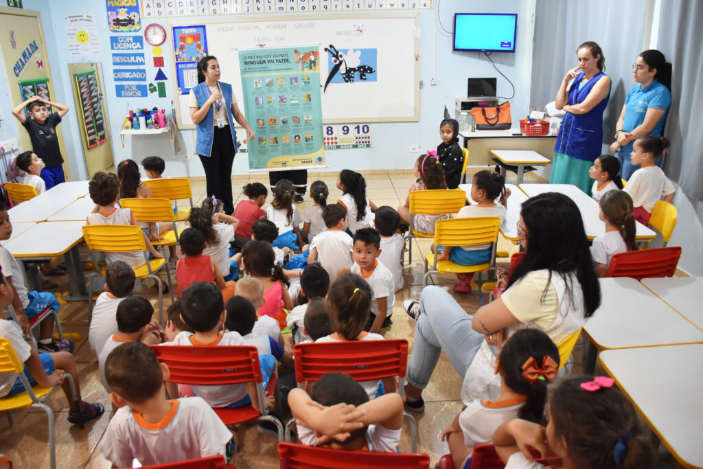 Equipe da Saúde auxilia no desenvolvimento do projeto sobre a dengue na Escola Henrique Ghellere