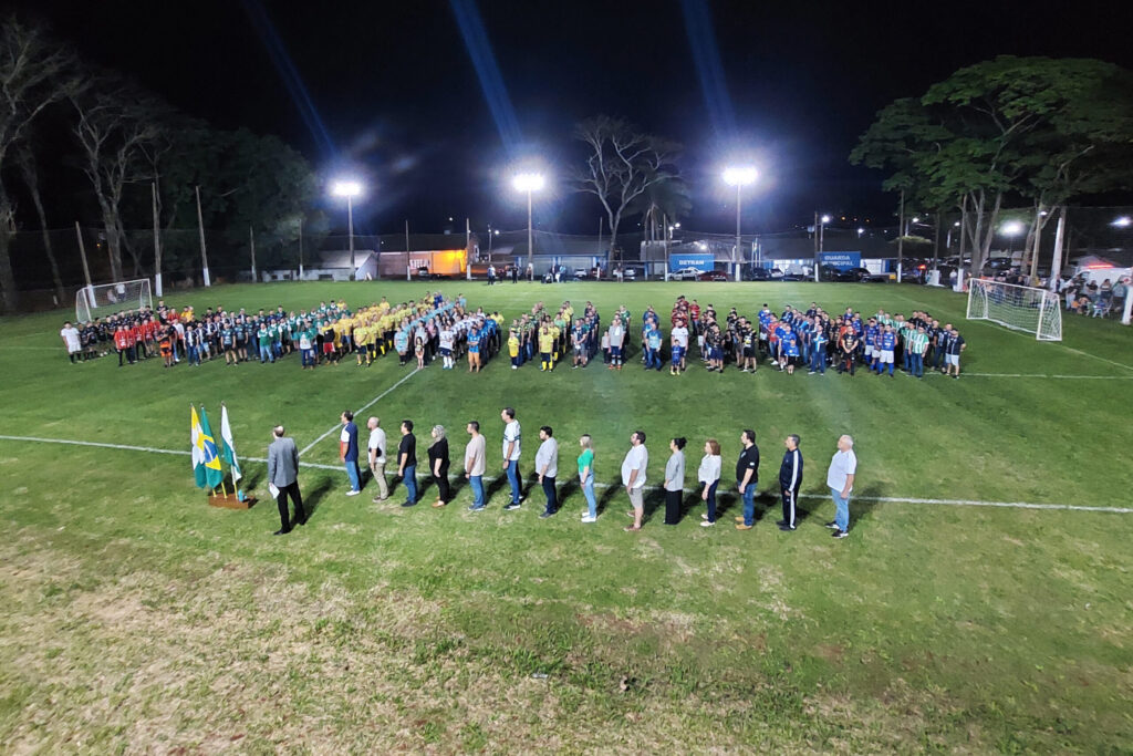 O Governo Municipal de São Miguel do Iguaçu, por meio da Secretaria de Cultura, Esporte, Turismo e Lazer, realizou na noite de segunda-feira, 21, a abertura do 2º Campeonato Municipal de Futebol Sete (Suiço) – Troféu Airton Tavares (Canhoto) no Parque de Exposições Benevenuto Verona. Um grande público compareceu para acompanhar e participar da cerimônia oficial de abertura, além de prestigiar os primeiros jogos da competição, que tiveram uma ‘chuva de gols’. Ao todo, foram anotados 29 tentos nos quatro jogos disputados logo após o cerimonial. A competição está contando com a participação de mais de 400 atletas, divididos em 31 equipes. E está segunda edição conta com uma grande novidade que é a participação feminina pela primeira vez na história do município. Estão confirmadas 03 equipes na categoria Idade Livre Feminino, além das categorias 48+ Masculino, 38+ Masculino e Idade Livre Masculino. Os jogos serão realizados ao longo das próximas semanas nos dois campos do Parque de Exposições e do Terminal Turístico Balneário Ipiranga e a tabela de jogos será divulgada semanalmente pela organização. Na abertura, foi realizado o desfile das delegações, juramento do atleta e discurso das autoridades. O juramento foi feito pela atleta Flaviana Rodrigues, da equipe Unidas pela Amizade São Jorge, que tem um currículo vitorioso no esporte de São Miguel. “Uma emoção muito grande ver o reconhecimento que o município está tendo com o esporte feminino. Fazer o juramento do atleta era um dos meus sonhos que hoje consegui realizar”, contou. Os atletas estão empolgados com o campeonato que vai agitar os amantes do futebol. “Esse evento é bom para o município, os atletas e seus familiares. A grande presença do público na abertura já mostra que o campeonato vai ser um sucesso”, disse o atleta Edson Ricardo Stankiewski, da equipe Casarão Bebidas. O secretário de Cultura, Esporte, Turismo e Lazer, Adaltro de Góes, disse que é uma emoção poder iniciar mais uma competição em São Miguel do Iguaçu. “Na primeira edição em 2021 foram 26 equipes e agora alcançamos 31 equipes, o que mostra a evolução do campeonato”, observou. Para o presidente da Câmara Municipal, Anderson Nunes Lazzeris, os organizadores estão de parabéns por denominar o campeonato de Troféu Airton Tavares. “Um nome que representa muito para o esporte de São Miguel do Iguaçu. Fico emocionado por valorizar ainda em vida esse atleta”, lembrou. O vice-prefeito Claudio Rodrigues, citou que esses eventos refletem na família porque auxilia na educação saudável dos munícipes. “O Governo Municipal atende hoje mais de 3.000 pessoas da comunidade, somente na área do esporte e do lazer”, informou. Claudio Rodrigues destacou ainda que os campos de futebol do Parque de Exposições estavam inativos e foram recuperados para dar condições de disputa do campeonato. “A grama foi recuperada, iluminação melhorada, além de reformas e melhorias nos alambrados ao redor dos campos”, lembrou. Após o cerimonial de abertura, aconteceram as primeiras partidas da competição, com os seguintes resultados: – Santa Cruz/RK Rações Agroferragens 08 x 02 Resenha do DM (Categoria Livre Masculino – Grupo B) – Amigos do Nico 05 x 00 – Santa Rosa 25 de Julho (Categoria 38+ Masculino – Grupo B) – Transmorgan 07 x 01 Unidas pela Amizade São Jorge (Categoria Livre Feminino) – Amigos do Nico 00 x 01 Santa Rita (Categoria 48+ masculino) A competição terá sequência nesta quarta-feira, 23 de agosto, com a realização de mais oito jogos em dois locais: Campos do Parque de Exposições Campo 01 19h00 – Livre Masculino – Grupo C Atria / Stop Modas x Santa Rita 20h00 – 38+ Masculino – Grupo A Império Chopp/Amigos do Futebol x Grazi Flores/Casa Carne Campo 02 19h00 – Livre Masculino – Grupo C Bar Sem Lona x Triacca 20h00 – 38+ Masculino – Grupo A Ultima Hora F.C x União Comercial Campos do Balneário Ipiranga Campo 01 19h00 – Livre Masculino – Grupo A Negradinha do Calçamento x Kipão/CHDS do Brasil/ Transmorgan 20h00 – 38+ Masculino – Grupo B Casarão Bebidas x Transmorgan/Solar/Recanto de Festas Campo 02 19h00 – Livre Masculino – Grupo A Clinica Cema/Original Pinturas x Agro Campo/Luciano Veículos 20h00 – Livre Masculino – Grupo B Santa Rosa 25 de Julho x Santa Cruz /RK Rações Agroferragens Fechando a primeira semana de competição, na próxima sexta-feira, 25 de agosto, serão realizados mais 12 jogos: Campos do Parque de Exposições Campo 01 19h00 – 38+ Masculino – Grupo B Casarão Bebidas x Amigos do Nico 20h00 – Livre Feminino Oficina do Óculos/ Grazy Flores x Transmorgan 21h00 – Livre Masculino – Grupo C Santa Rita x Bar Sem Lona Campo 02 19h00 – 38+ Masculino – Grupo A União Comercial x Grazi Flores/Casa Carne 20h00 – 48+ Masculino Santa Rita x Casa da Lavoura/Planta Maquinas/Disam 21h00 – Livre Masculino – Grupo A União Comercial / Império do Chopp x Negradinha do Calçamento Campos do Balneário Ipiranga Campo 01 19h00- Livre Masculino – Grupo A Kipão CHDS do Brasil/ Transmorgan x Clinica Cema/Original Pinturas 20h00 – 48+ Masculino Panificadora e Confeitaria Kipão x Solar SMI 21h00 – Livre Masculino – Grupo B Restaurante Gauchinho x Resenha do DM Campo 02 19h00 – Livre Masculino – Grupo C Morgan Transporte/Raimundi x Atria / Stop Modas 20h00 – 38+ Masculino – Grupo A Ultima Hora F.C x Império Chopp/Amigos do Futebol 21h00 – Livre Masculino – Grupo B Santa Rosa 25 de Julho x Barbearia Stigma/Fik Frio Energia Solar/Niero Planejamentos ASSESSORIA DE COMUNICAÇÃO, IMPRENSA E MIDIA SOCIAL