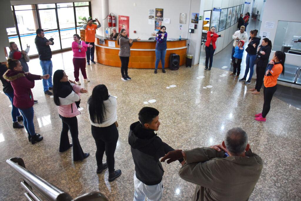 O Governo Municipal, por intermédio da Secretaria de Cultura, Esporte, Lazer e Turismo está desenvolvendo nesta quarta-feira, 29, o ‘dia do desafio’, campanha mundial de incentivo à prática de esportes e atividades físicas, realizada por instituições públicas e privadas em 14 países da América Latina. Uma equipe formada pelos profissionais da secretaria de esporte e cultura está percorrendo escolas, entidades, ginásios e realizando atividades físicas com as pessoas. Na parte da manhã uma equipe esteve no Paço Municipal Abel Bez Batti realizando essas atividades com os funcionários públicos. “É o incentivo à saúde e a qualidade de vida das pessoas. Qualquer ambiente e local pode ser usado para realizar uns minutinhos de alongamento”, disse Alexandre Carra, professor de Educação Física. Os funcionários relataram a importância desses momentos. “Precisamos disso para relaxar, descontrair e exercitar”, contou o servidor, José Flávio Maia Santos. “O ideal seria realizarmos isso todos os dias, pelo menos uns quinze minutinhos”, completou o servidor Targus Augusto Lordani. Pratique qualquer exercício e registre sua participação em fotos e vídeos no site www.sescpr.com.br/ddd. O evento é coordenado pelo Serviço Social do Comércio (SESC/PR) e Governo Municipal, com o apoio da Fecomércio-PR e Unesco. ASSESSORIA DE COMUNICAÇÃO, IMPRENSA E MIDIA SOCIAL