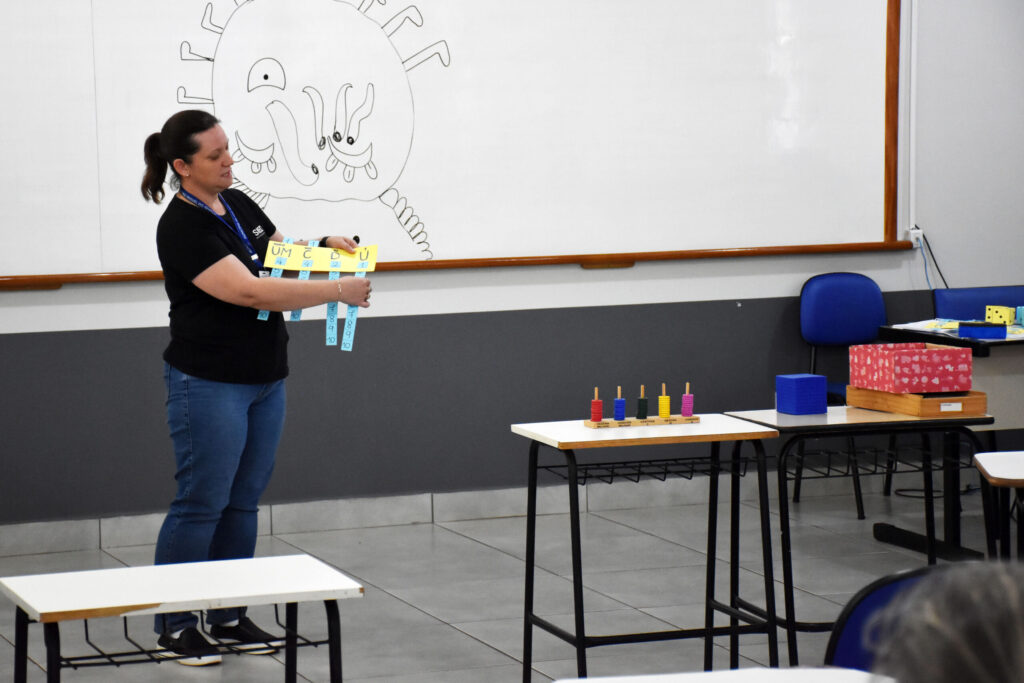 O Governo Municipal de São Miguel do Iguaçu, por intermédio da Secretaria de Educação, realizou nesta terça-feira, 30, na Uniguaçu, um dia de formação em matemática para os professores dos 4º e 5º anos da Educação Fundamental. O objetivo foi reforçar os conteúdos básicos e fundamentais desta disciplina. “A falta de entendimento desses conteúdos em sala de aula dificulta o avanço da criança”, disse a diretora pedagógica da secretaria, Eliane Noeli Schemmer Frazão. A secretaria realizou recentemente a primeira etapa de avaliação diagnóstica e os alunos tiveram melhor desempenho no componente curricular de Língua Portuguesa, com 61,07% de aproveitamento. No componente de Matemática, o índice de aproveitamento foi de 58,61%. “Essa formação busca resgatar os conteúdos dessa disciplina para que esses índices subam”, completou Eliane. A professora Hellen Eduarda Witkoski Guimarães, do 5º ano da Escola Pequeno Príncipe, contou que a formação vai enriquecer o aprendizado dos professores na aplicação da matemática. “Tradicionalmente essa disciplina tem trazido dificuldades para alguns alunos”, relatou. Para a secretária de Educação, Solange Gamba, a matemática é um desafio no processo de ensinar e quanto mais se debruçar sobre ela, melhores serão os resultados. “Nossa equipe pedagógica está sempre atenta ao desempenho dos alunos nessa e outras disciplinas”, finalizou. ASSESSORIA DE COMUNICAÇÃO, IMPRENSA E MIDIA SOCIAL