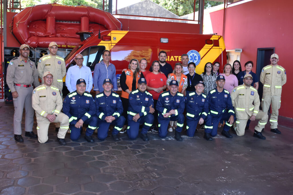O Governo Municipal de São Miguel do Iguaçu, por intermédio da Secretaria de Assistência Social, realizou na tarde de quinta-feira, 18, a entrega de uniformes novos para os agentes da Defesa Civil do município, que atuam juntamente com a equipe do Corpo de Bombeiros. A entrega dos uniformes, que tiveram um investimento de R$ 19.341,68, com recursos próprios do município, foi realizada do quartel do Corpo de Bombeiros e contou com a participação de representantes dos Poderes Executivo e Legislativo. Cada agente recebeu dois conjuntos de uniformes contendo kit gandola e calça, japona, camiseta, calção, cinto e kit agasalho, produzidos com materiais adequados e com mais faixas refletivas. O comandante do quartel de Bombeiros, tenente Rogério dos Santos Oliveira Junior, destacou a importância desses uniformes para a equipe. ‘Se engana quem acha que é uma simples vestimenta, são uniformes que garantem mais agilidade e segurança para os combatentes, como, por exemplo, em casos de incêndio e de atendimentos de acidentes noturnos’, exaltou. O coordenador da Defesa Civil, Sérgio Passos Gonçalves, agradeceu a atenção do Governo Municipal e o investimento nesses kits necessários para o dia-a-dia dos agentes. ‘Esse novo uniforme aumenta nossa segurança e dá mais tranquilidade para os trabalhos’, disse. Para a aquisição desses uniformes, foram muitas semanas de trabalho para finalizar o processo licitatório, como lembrou a diretora da Defesa Civil e secretária de Saúde, Adriana da Silva Motta. ‘Foi uma licitação bastante complicada, pois teria que atender todas as necessidades. Por isso, temos que agradecer a Márcia, que é a assessora da Defesa Civil, e a toda a equipe que trabalha em apoio a esses guerreiros’, relatou. Representando a Câmara Municipal, o 1º secretário, vereador Evandro Ghellere, parabenizou os agentes e bombeiros pelas atividades desenvolvidas e desejou um bom trabalho com esses novos uniformes. ‘Com vocês trabalhando, com certeza, nós dormimos mais tranquilos!’, exaltou O vice-prefeito Claudio Rodrigues, fez questão de agradecer o excelente e primordial trabalho que é desenvolvido por esses servidores e reforçou a preocupação e zelo do Governo Municipal com os servidores públicos. ‘São pessoas que estão à disposição da comunidade. Quando temos problemas com chuva, com fogo, com falta de água, são eles que a frente desse trabalho. Então nada mais necessário do que essa adequação dos uniformes para trazer mais segurança para eles nessa grande parceria com o Corpo de Bombeiros’, relatou. O vice-prefeito lembrou ainda que, além da parceria já existe com o Corpo de Bombeiros, o município já realizou a doação de um terreno para a construção de uma nova sede para o quartel. ‘O terreno lá no Novo Mundo já está cedido, só dependendo agora dos trâmites dos Bombeiros’, afirmou Claudio Rodrigues. ASSESSORIA DE COMUNICAÇÃO, IMPRENSA E MIDIA SOCIAL