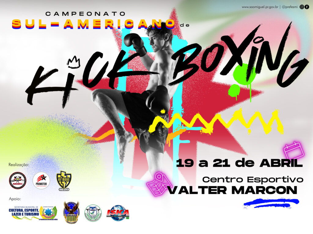 São Miguel do Iguaçu vai sediar neste fim de semana, de 19 a 21 de abril, o Campeonato Sul Americano de Kickboxing, que será realizado no Centro Esportivo Valter Marcon. O evento é organizado pelo Centro de Treinamento Gilbertto Santtos, com apoio do Governo Municipal, Confederação Brasileira, Federação Paranaense e a International Sport Kickboxing Association (ISKA). Para a competição, o município vai receber cerca de 240 atletas, que irão se enfrentar em mais de 45 lutas de ringue, além de lutas de tatame, em diversas categorias, durante os três dias de evento. São Miguel do Iguaçu vai estar participando com 16 atletas do sub-12 ao sub-17, integrantes do projeto desenvolvido gratuitamente no Bairro Floresta. O professor Gilbertto Santtos, um dos organizadores do evento, conta que São Miguel do Iguaçu será a capital do kickboxing neste fim de semana. “Além de atletas de diversas parte do Brasil haverá também participantes de outros países como o Paraguai, por exemplo”, informou. Estão confirmados atletas dos estados de São Paulo, Rio de Janeiro, Goiás, Rio Grande do Sul e Santa Catarina. E do Paraná virão atletas de Matelândia, Vera Cruz do Oeste, Céu Azul, Capitão Leônidas Marques, Ampére, Cascavel, Quatro Pontes, Londrina, Cambé, Foz do Iguaçu, Santa Terezinha de Itaipu e atletas da casa, São Miguel do Iguaçu. Confira a programação: Sexta-feira (19): 19h00 – Recepção e pesagem dos atletas Sábado (20): 09h00 – Início das competições 19h00 – Cerimonial de abertura oficial do evento 19h30 – Início das lutas principais com disputas de cinturões. Domingo (21): 09h00 – Reinício das competições 12h00 – Encerramento ASSESSORIA DE COMUNICAÇÃO, IMPRENSA E MIDIA SOCIAL