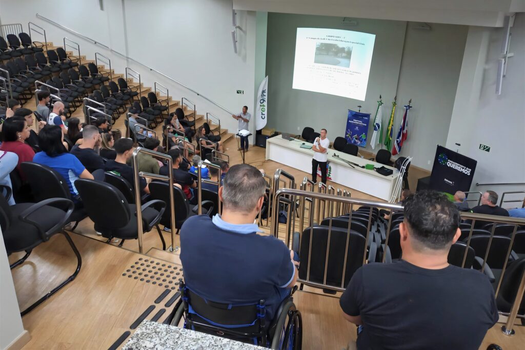 Dois professores de Educação Física de São Miguel do Iguaçu estiveram representando o município no Festival Paradesportivo, que foi realizado na cidade de Medianeira, nos dias 08 e 09 de abril, e apresentaram o projeto de paradesporto desenvolvido pelo Governo Municipal, por meio da Secretaria de Cultura, Esporte, Lazer e Turimo, em parceria com a Pestalozzi e Uniguaçu. Os professores Dilma Rovaris e Roberto Sparenberg, falaram sobre as atividades desenvolvidas para cerca de 40 profissionais da área. O objetivo foi preparar para os Jogos Paradesportivos do Paraná, evento que vai acontecer de 28 de maio a 02 de junho, em Londrina. O projeto de paradesporto do município reúne cerca de 25 alunos nas modalidades de handebol de cadeira de rodas e atletismo, com o arremesso de peso, lançamento de dardo e disco e bocha adaptada. Os treinos acontecem no Ginásio de Esportes Joelson Marcelino e na pista de atletismo da Uniguaçu. Segundo o integrante da coordenação do paradesporto da Secretaria de Estado do Esporte, Renato Vieira Júnior, os profissionais de São Miguel têm larga experiência e grande preparo na área. “Merecem e têm nosso reconhecimento”, explanou. O secretário de Cultura, Esporte, Lazer e Turismo, Adaltro de Góes, parabenizou os profissionais pelo belo trabalho que vêm fazendo em prol do paradesporto do município. “Além do incentivo à prática esportiva desses atletas, esse trabalho proporciona ainda a inclusão através do esporte”, exaltou. ASSESSORIA DE COMUNICAÇÃO, IMPRENSA E MIDIA SOCIAL