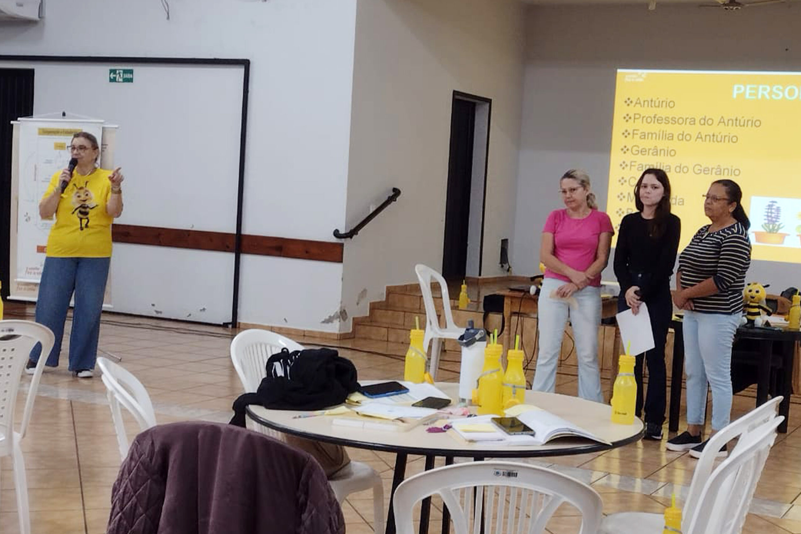 Esse é o 7º ano que o município participa do programa e nesses encontros os professores aprendem como funciona a metodologia do programa. “É uma formação inicial e continuada e a novidade desse ano é a participação dos alunos do ensino fundamental”, disse a diretora pedagógica da secretaria, Eliane Noeli Schemmer Frazão.