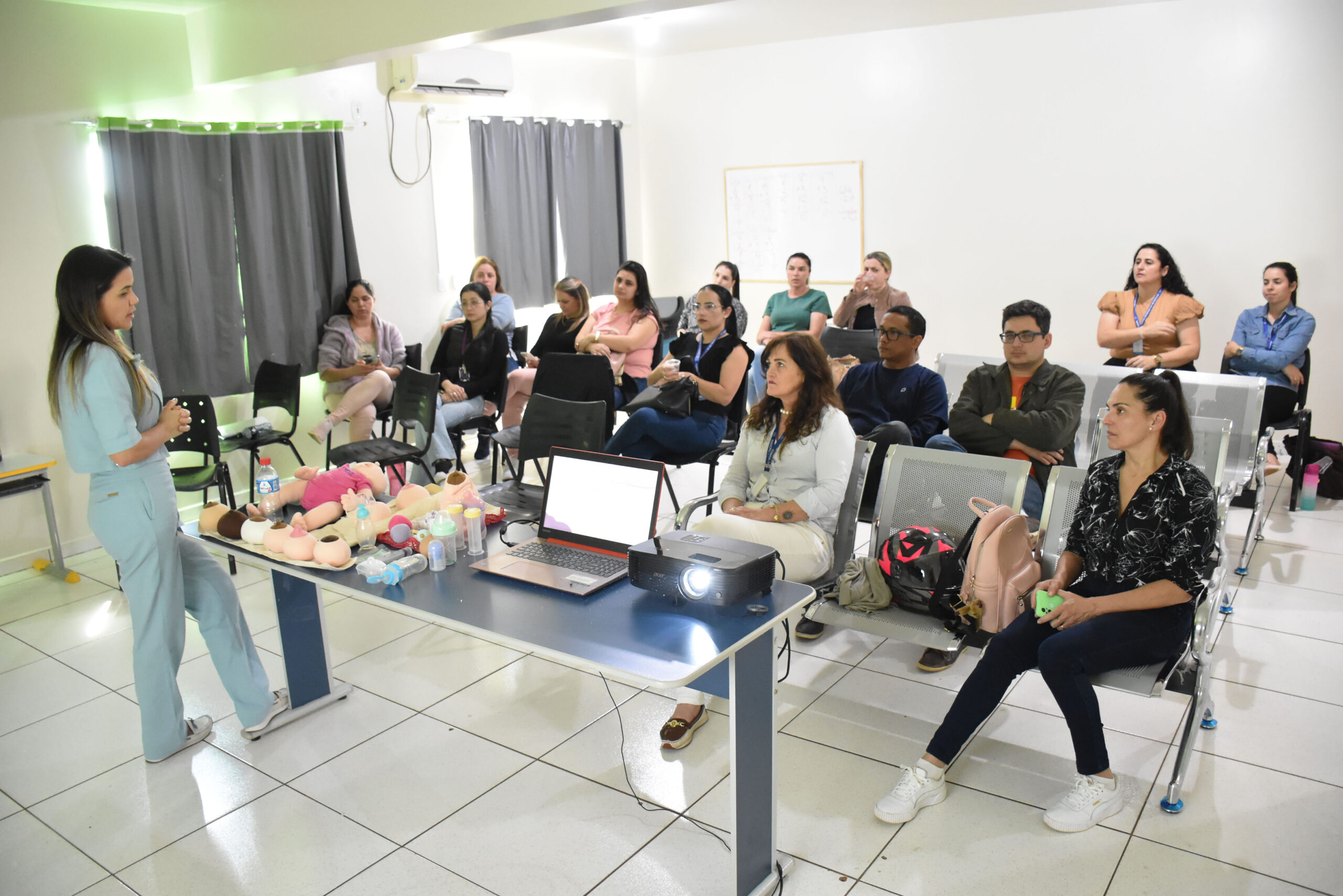 O objetivo foi levar informações específicas sobre amamentação (expectativa x realidade), cuidados com as mamas na gestação, pega correta, posicionamento, postura do bebê e da mãe, tamanho do estômago do bebê, picos de crescimento, produção de leite, ganho de peso, conservação do leite materno, entre outros.