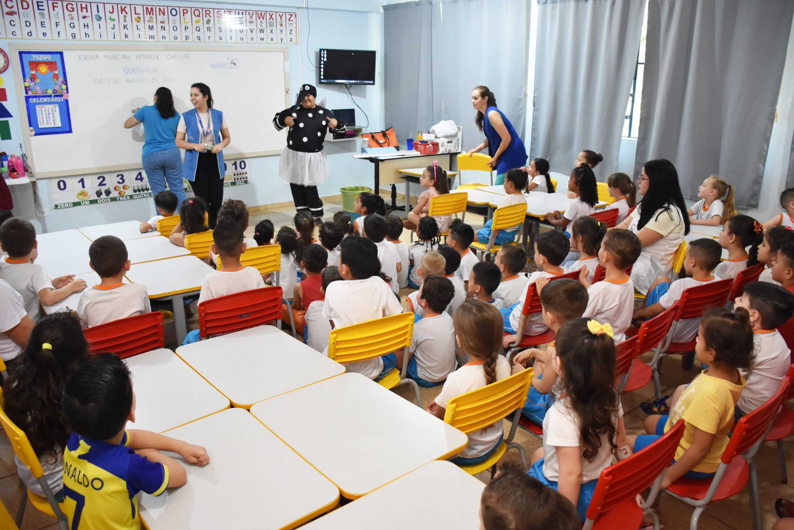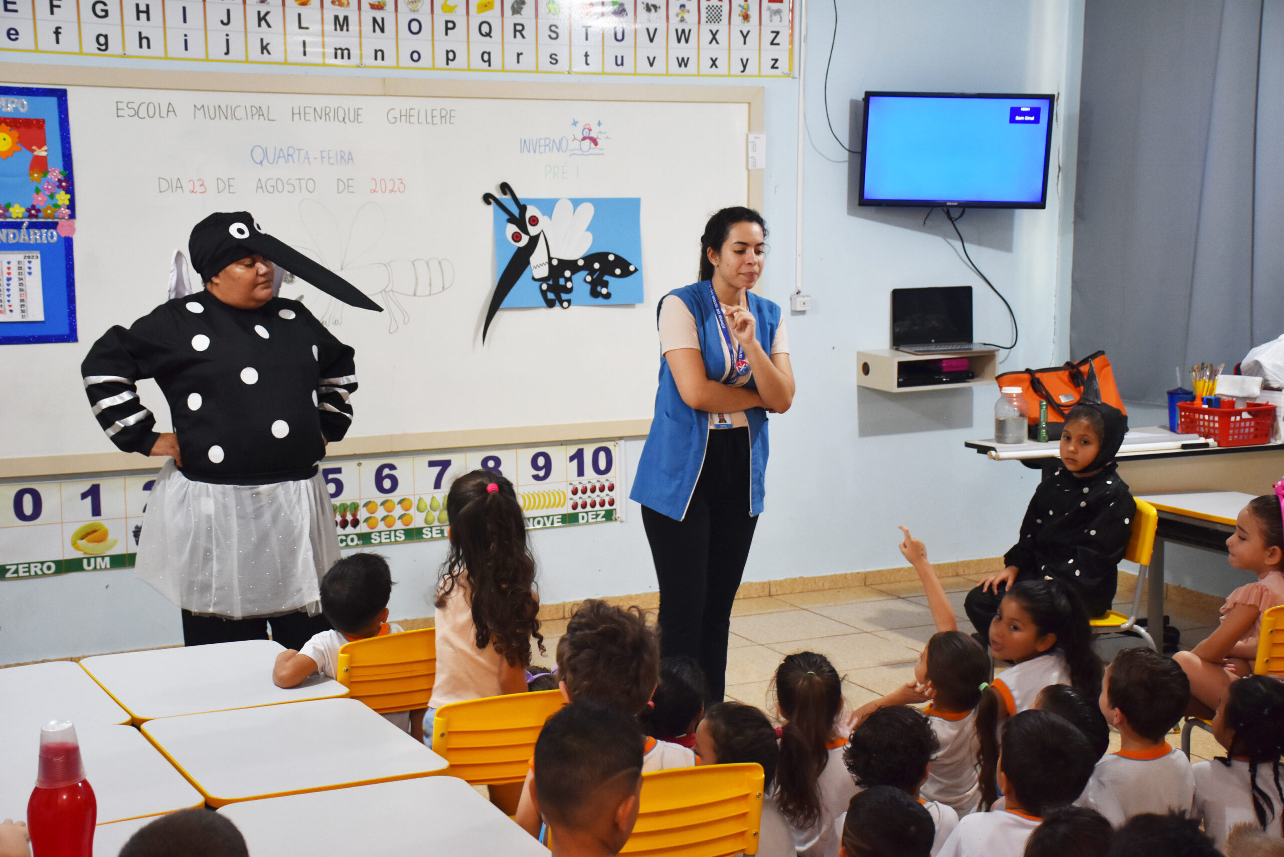 A equipe da Vigilância em Saúde, da Secretaria Municipal de Saúde de São Miguel do Iguaçu, apresentou uma atividade sobre a dengue aos alunos do pré I e II, da Escola Municipal Henrique Ghellere.