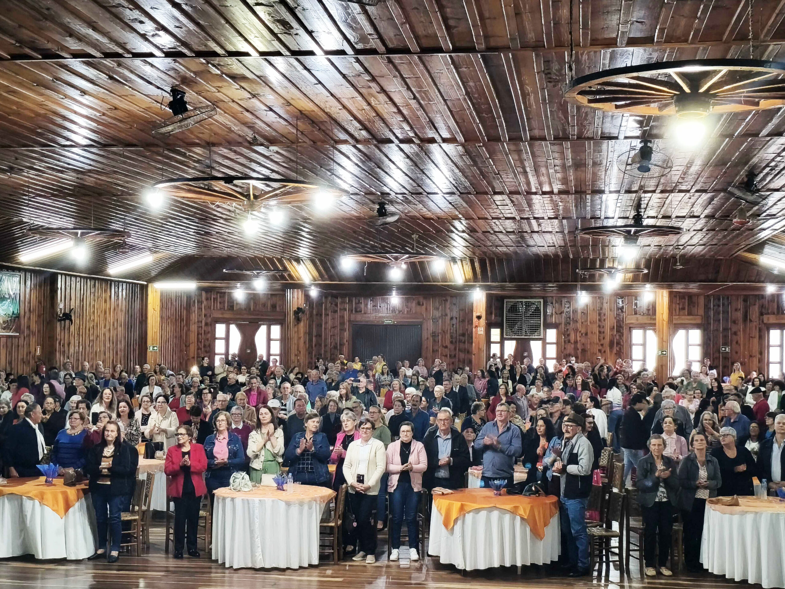 Durante a solenidade, os participantes foram acolhidos com uma mensagem especial e um poema em homenagem à terceira idade, ressaltando a importância do respeito, da gratidão e da dignidade em todas as fases da vida. Em seguida, aconteceu a palestra-show com o comunicador Enirson Macagnan, que proporcionou uma atividade dinâmica, com reflexões, humor e música.