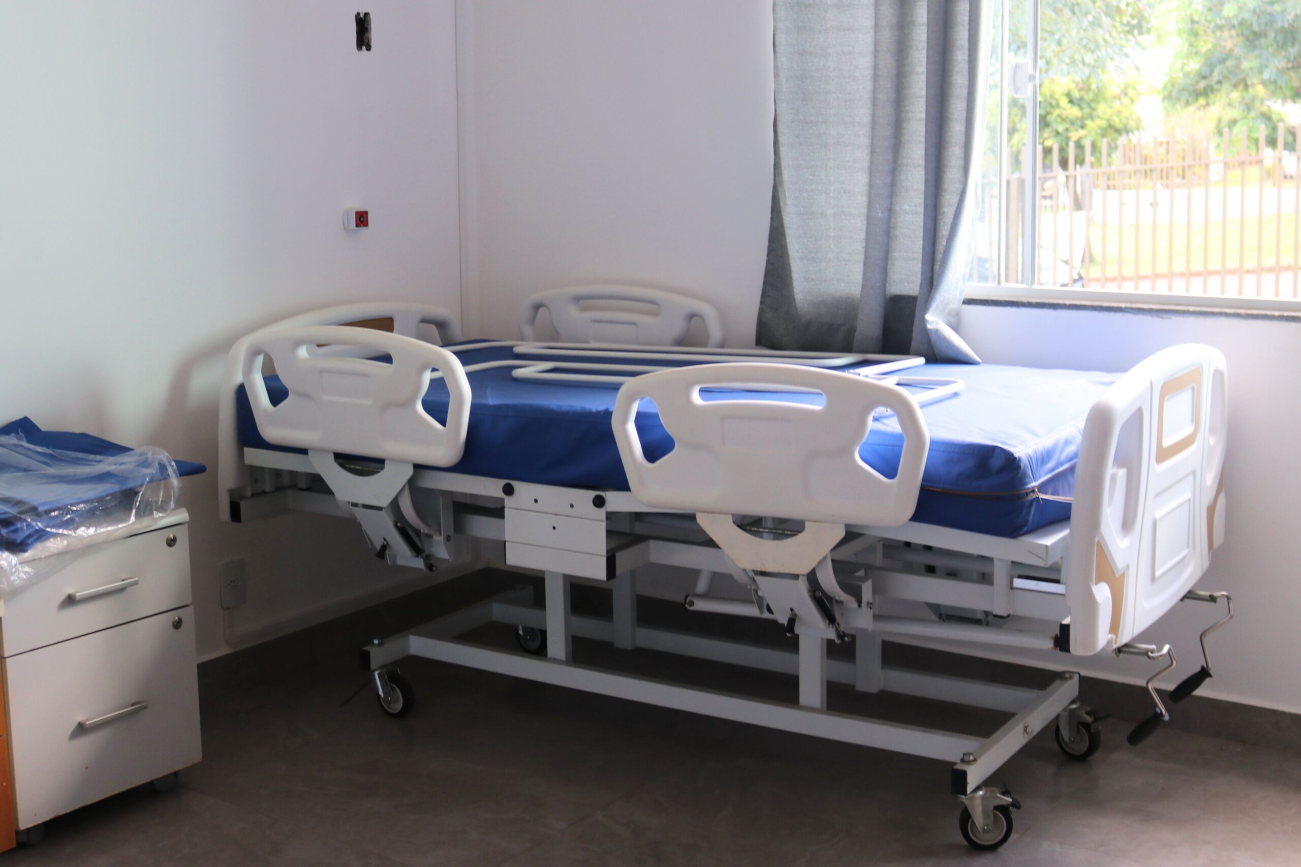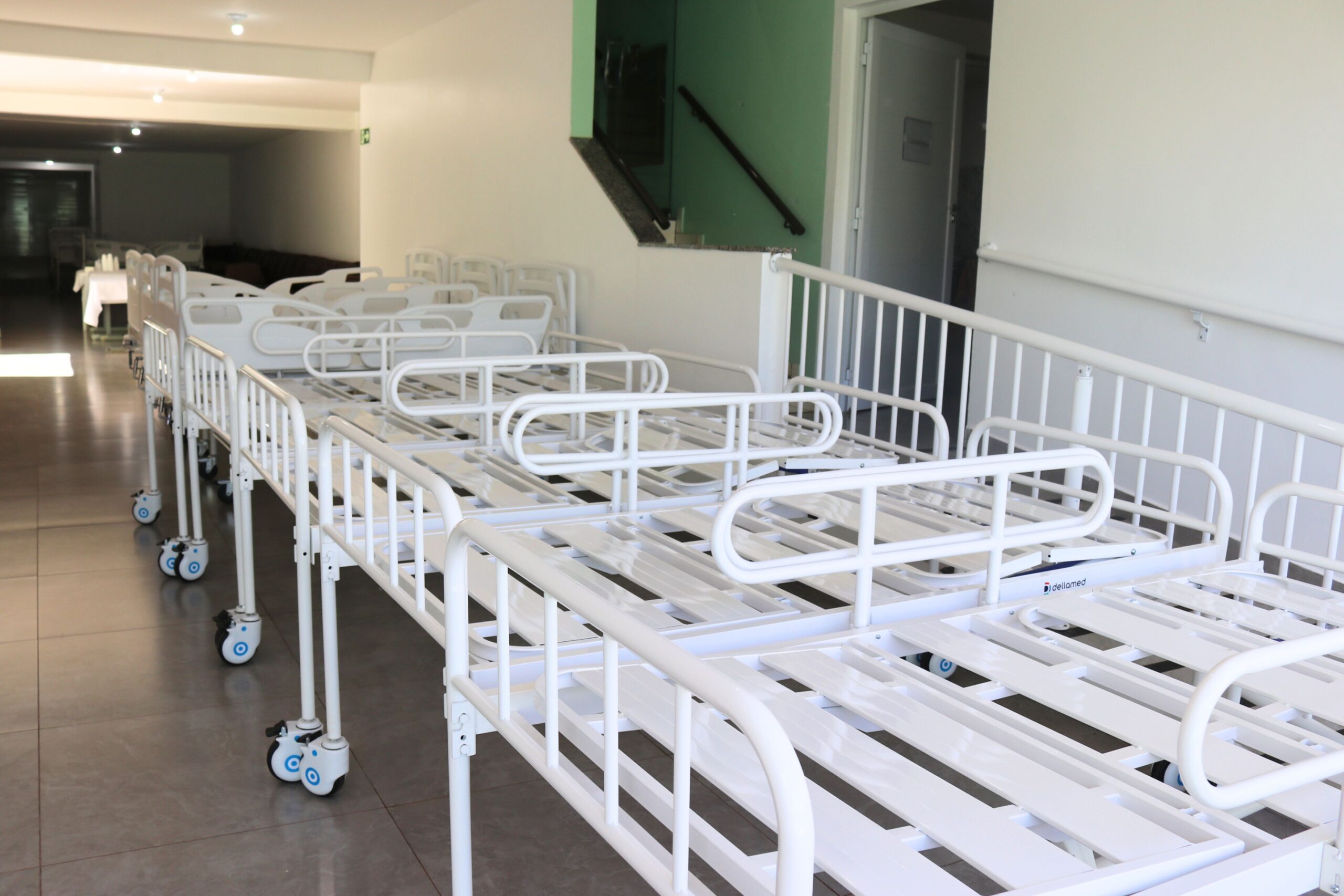 As camas hospitalares possuem cabeceiras removíveis, grades laterais de proteção, sistema de articulação por manivelas que permitem diferentes posições e rodízios com freio, características que facilitam o trabalho dos cuidadores e oferecem mais comodidade e segurança aos moradores do lar.