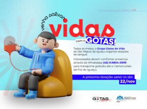 O Grupo Gotas de Vida, vinculado à Secretaria Municipal de Saúde de São Miguel do Iguaçu, convida a comunidade para...
