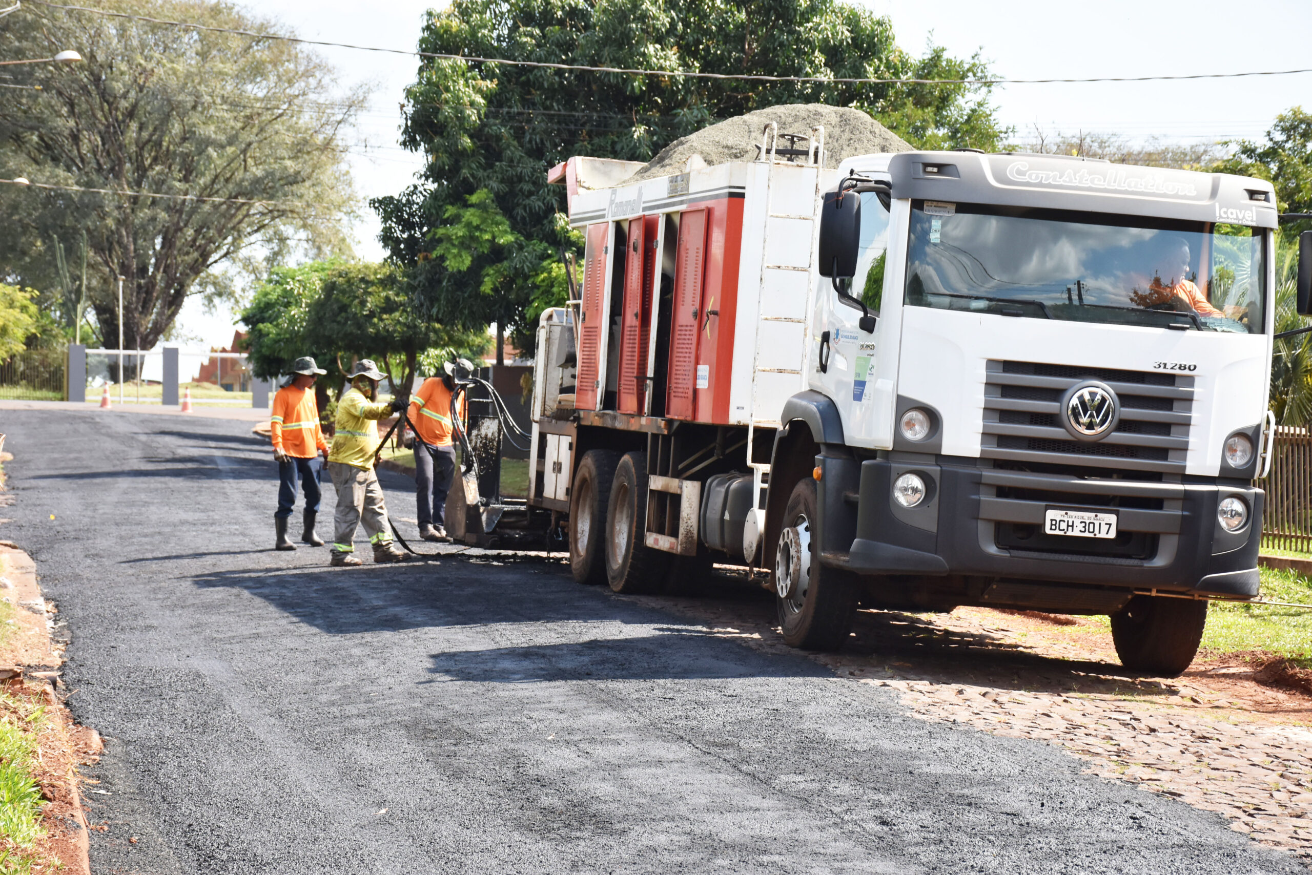 Nesta semana, os trabalhos foram iniciados no Bairro Floresta, com a aplicação da micropavimentação asfáltica sobre a pavimentação poliédrica nas Ruas Santa Helena e Cacic, para na sequência seguir nas demais vias do bairro que não têm asfalto.